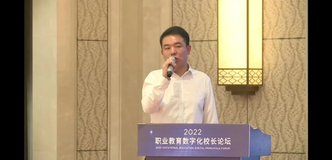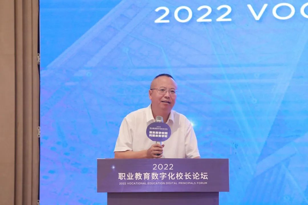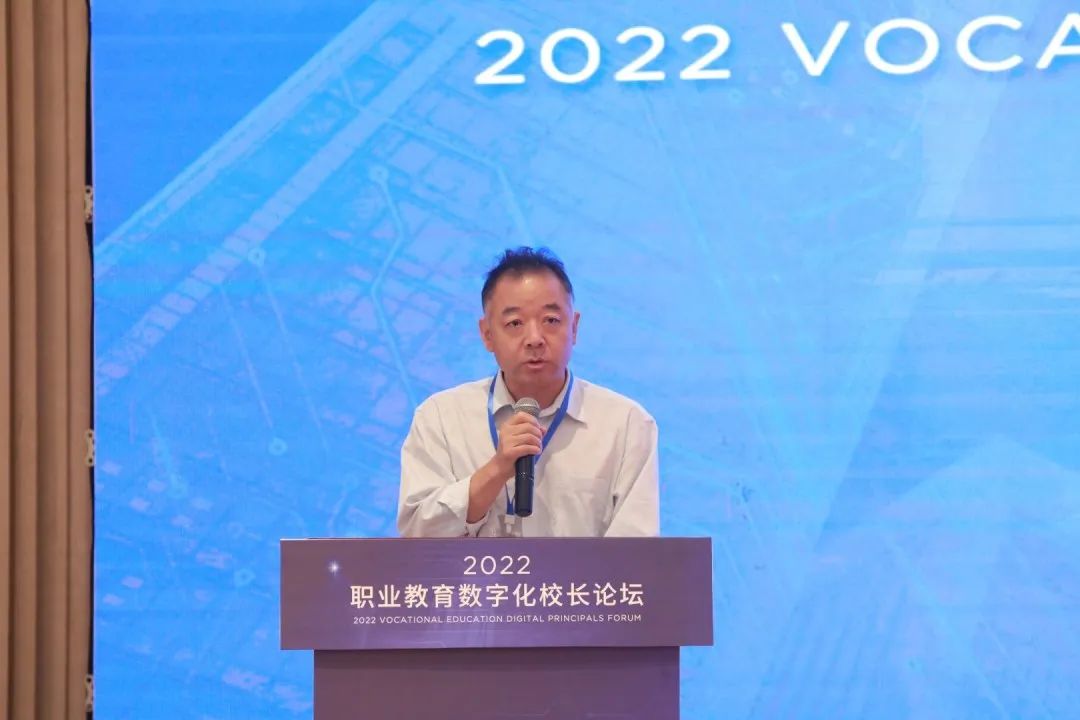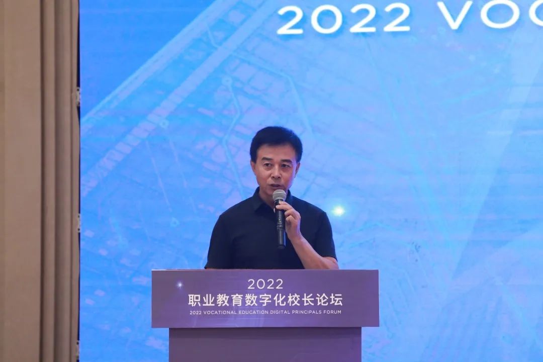 中國(guó)教育發(fā)展戰(zhàn)略學(xué)會(huì)執(zhí)行會(huì)長(zhǎng)、教育部政策法規(guī)司原司長(zhǎng)孫霄兵作線上講話。孫霄兵提到,產(chǎn)業(yè)數(shù)字化對(duì)社會(huì)各行業(yè)勞動(dòng)者素質(zhì)提出了更高要求,作為區(qū)域產(chǎn)業(yè)發(fā)展的重要支撐,職業(yè)教育數(shù)字化建設(shè)是順應(yīng)歷史發(fā)展、順應(yīng)產(chǎn)業(yè)變革、順應(yīng)人民需要的重大戰(zhàn)略選擇,將成為影響職業(yè)教育高質(zhì)量發(fā)展、深化職業(yè)教育改革的重要因素。
