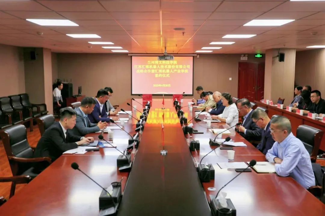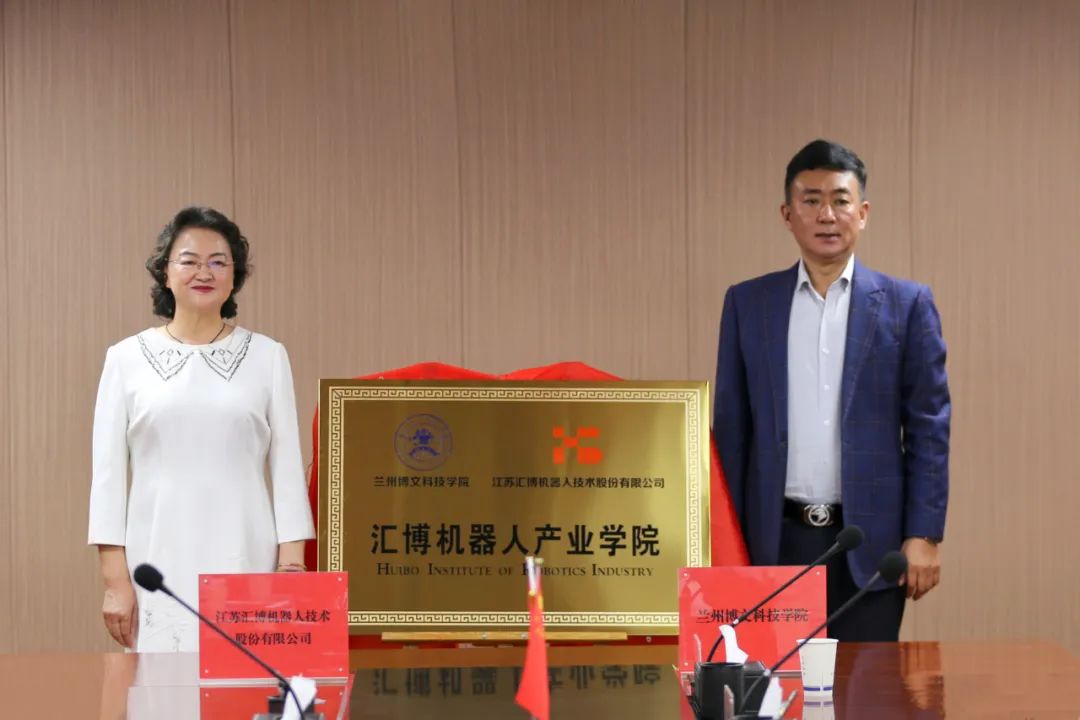 儀式上,江蘇匯博機(jī)器人技術(shù)股份有限公司與蘭州博文科技學(xué)院簽訂“匯博機(jī)器人產(chǎn)業(yè)學(xué)院校企合作協(xié)議書”。